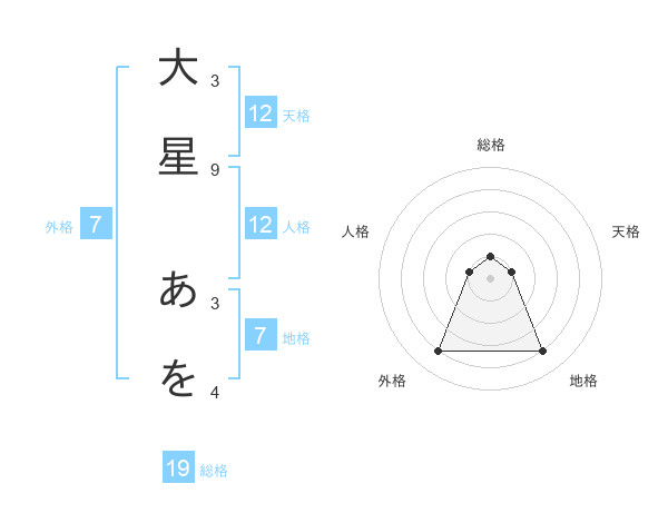 大星 あをさんの天格は12画の1点!
