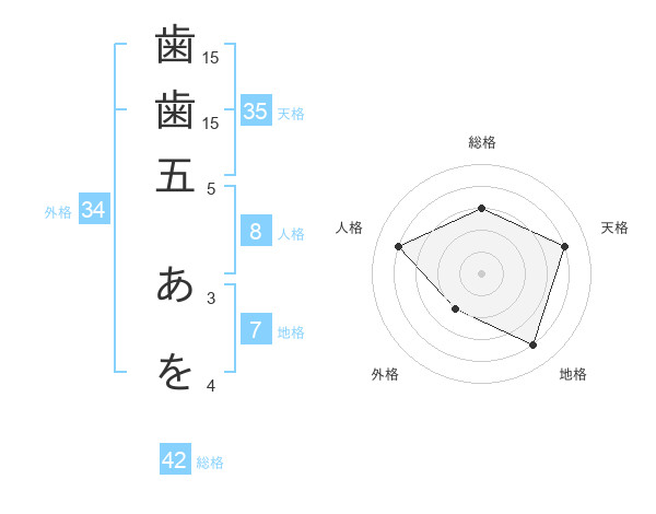 歯歯五 あをさんの外格は34画の2点!