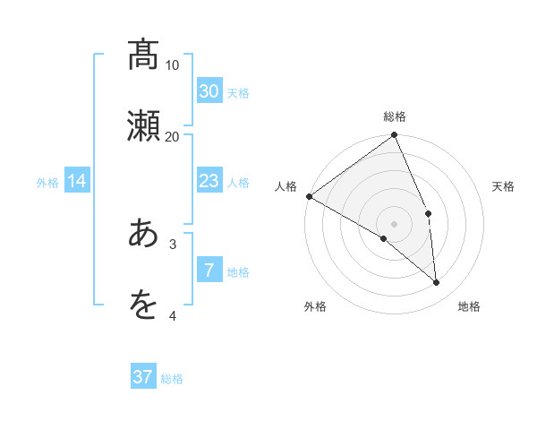 髙瀬 あをさんの総格は37画の5点!