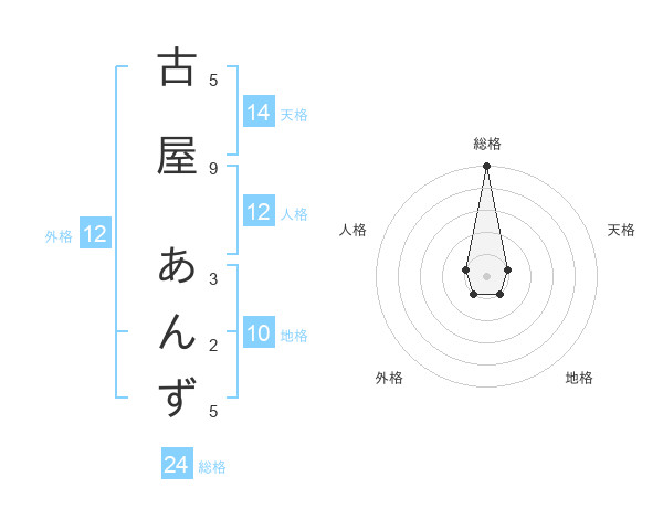 古屋 あんずさんを姓名の画数から五運を鑑定