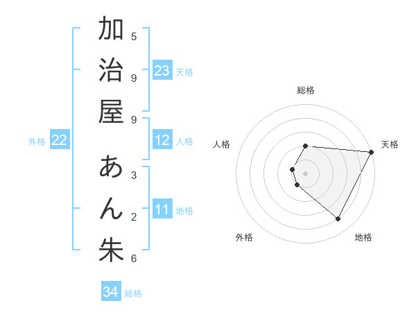 加治屋 あん朱さんを姓名の画数から五運を鑑定
