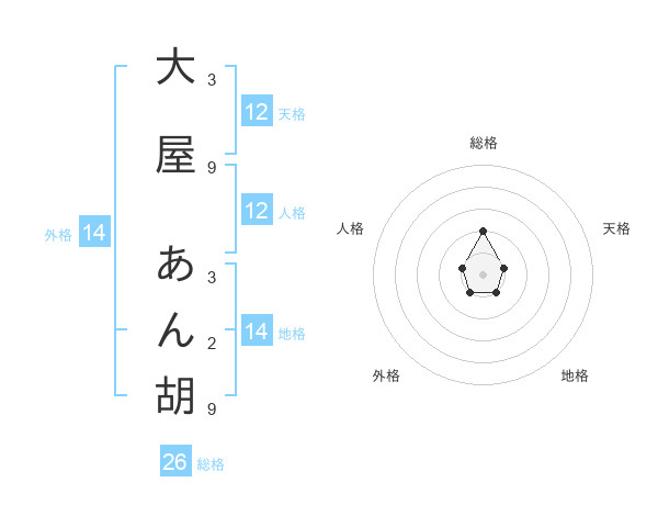 大屋 あん胡さんの総格は26画の2点!