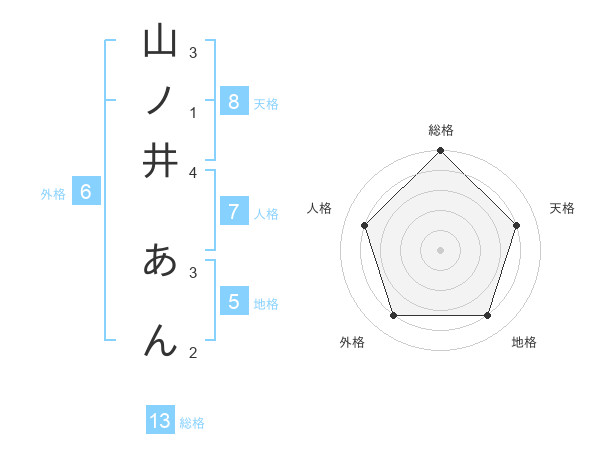 山ノ井 あんさんを姓名の画数から五運を鑑定