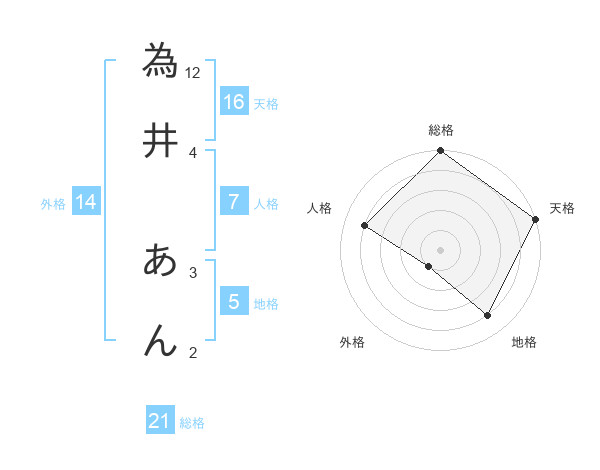 為井 あんさんの総格は21画の5点!