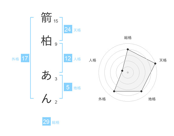 箭柏 あんさんの総格は29画の4点!