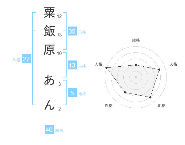 粟飯原 あんさんの総格は40画の2点!