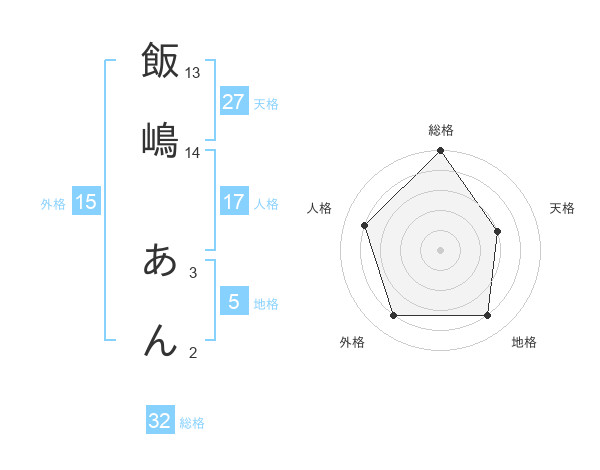 飯嶋 あんさんを姓名の画数から五運を鑑定