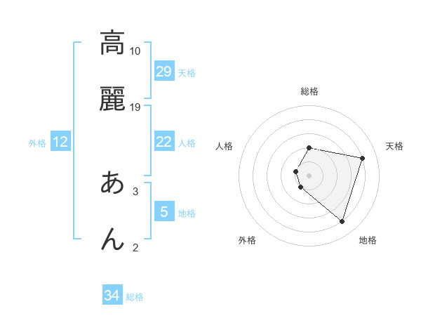 高麗 あんさんの総格は34画の2点!