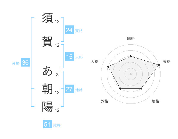 須賀 あ朝陽さんの天格は24画の5点!