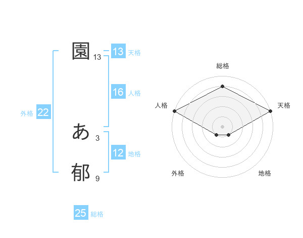 園 あ郁さんの天格は13画の5点!
