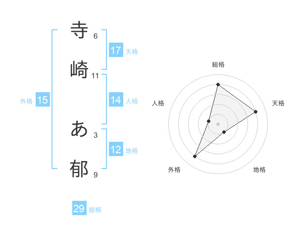 寺崎 あ郁さんの天格は17画の4点!