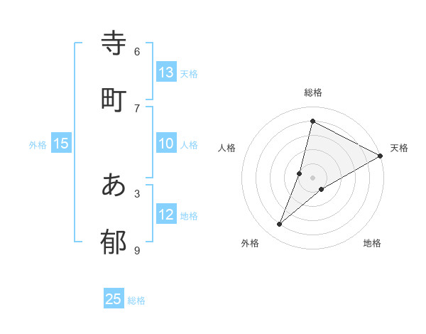 寺町 あ郁さんの総格は25画の4点!