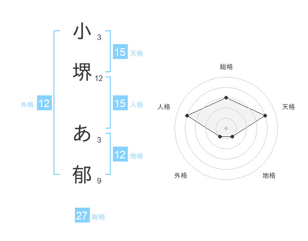 小堺 あ郁さんを姓名の画数から五運を鑑定