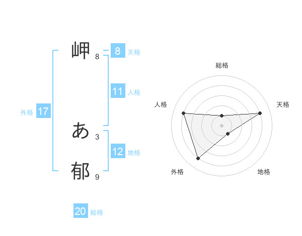 岬 あ郁さんの総格は20画の1点!