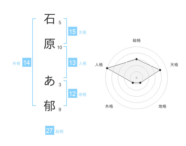 石原 あ郁さんを姓名の画数から五運を鑑定