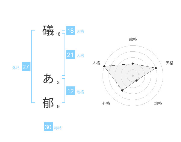礒 あ郁さんの総格は30画の2点!