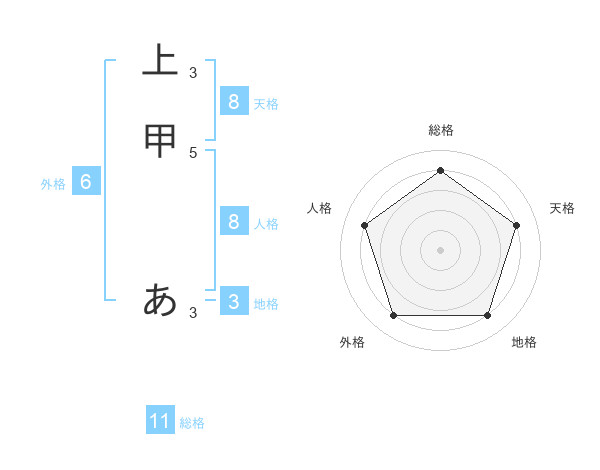 上甲 あさんの天格は8画の4点!