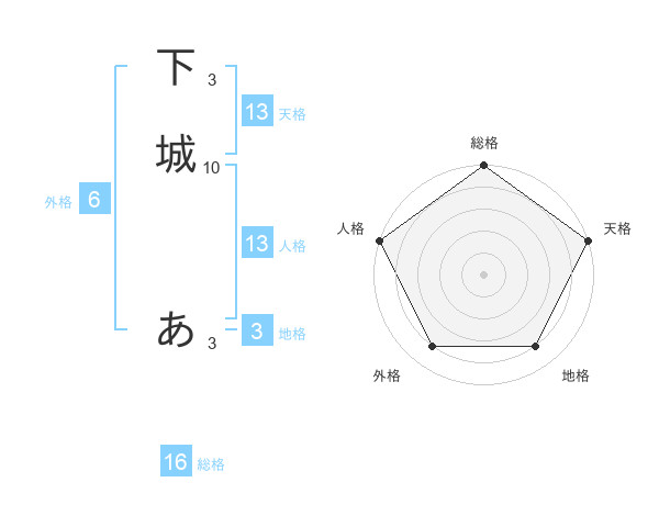 下城 あさんの天格は13画の5点!