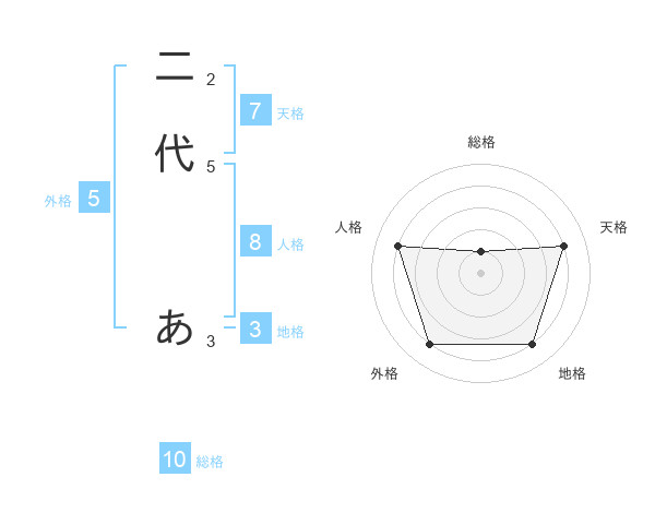 二代 あさんの外格は5画の4点!