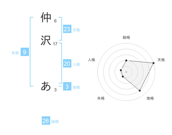 仲沢 あさんの天格は23画の5点!