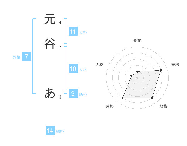 元谷 あさんの天格は11画の4点!