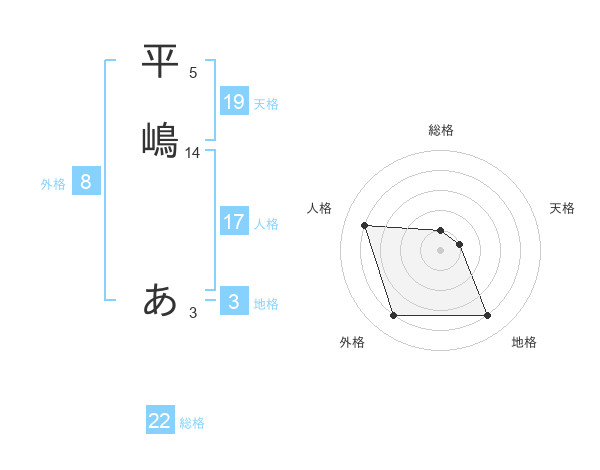 平嶋 あさんの外格は8画の4点!