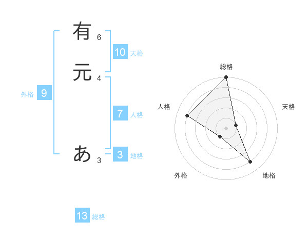 有元 あさんの総格は13画の5点!