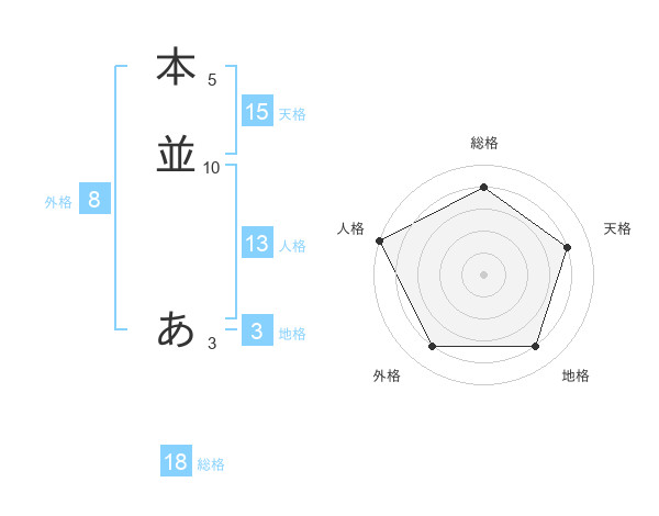 本並 あさんの地格は3画の4点!