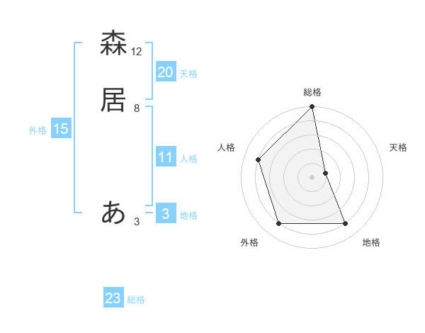 森居 あさんの天格は20画の1点!