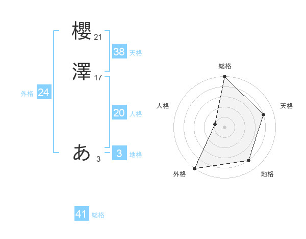 櫻澤 あさんを姓名の画数から五運を鑑定