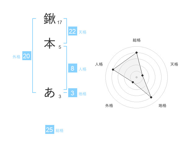 鍬本 あさんの天格は22画の1点!