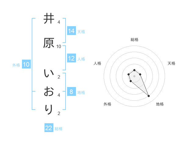 井原 いおりさんの総格は22画の1点!
