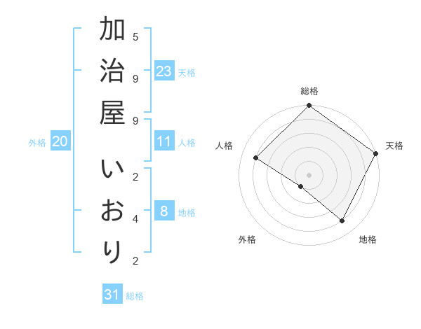 加治屋 いおりさんを姓名の画数から五運を鑑定
