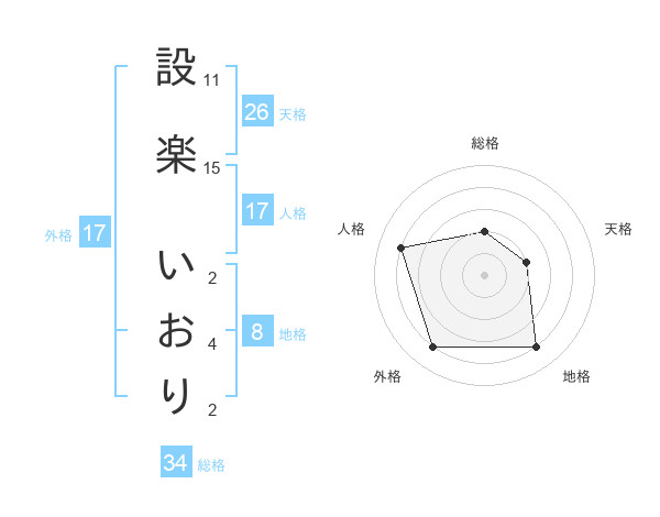 設楽 いおりさんを姓名の画数から五運を鑑定