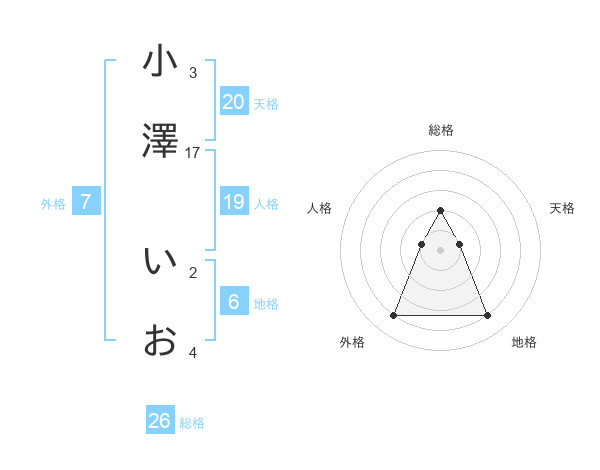 小澤 いおさんの総格は26画の2点!