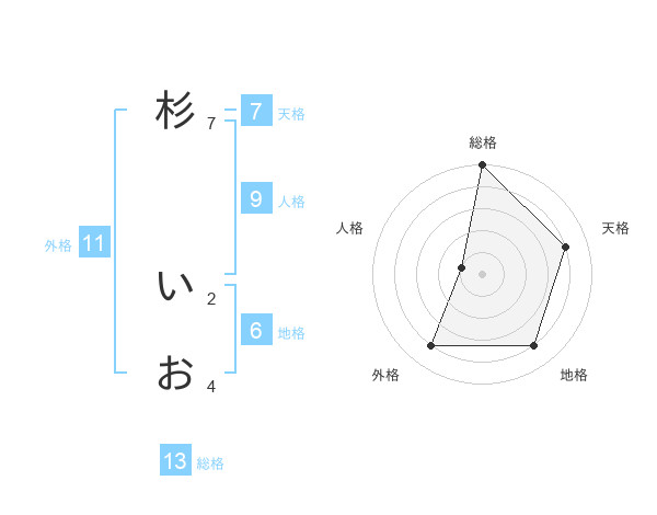 杉 いおさんの総格は13画の5点!