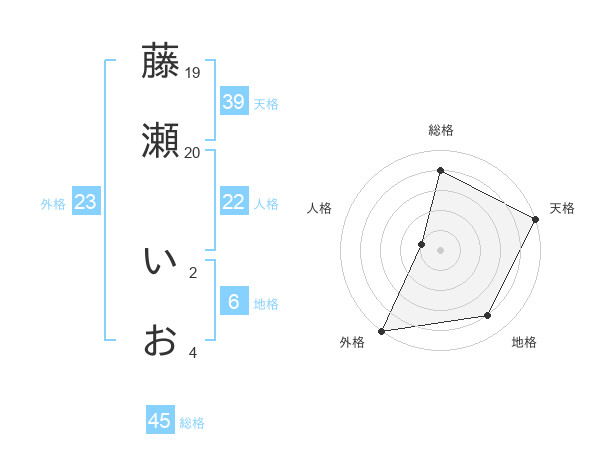藤瀬 いおさんを姓名の画数から五運を鑑定