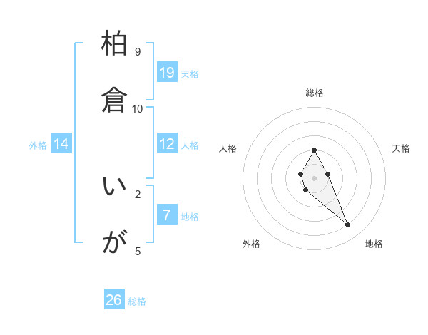 柏倉 いがさんの総格は26画の2点!