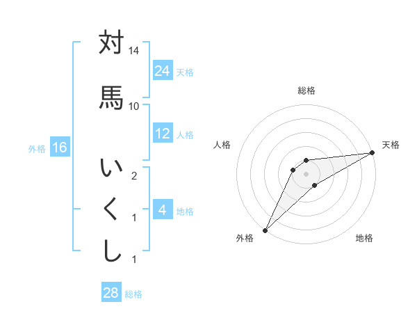 対馬 いくしさんを姓名の画数から五運を鑑定