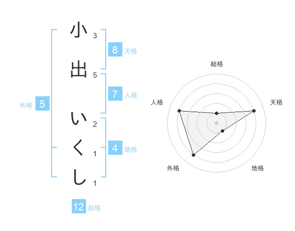 小出 いくしさんの総格は12画の1点!