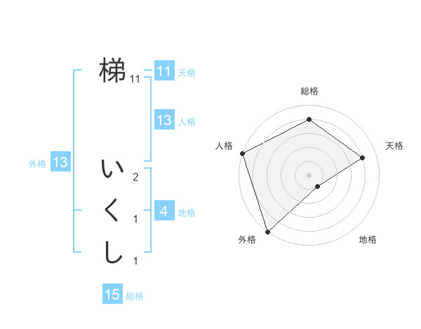 梯 いくしさんの総格は15画の4点!