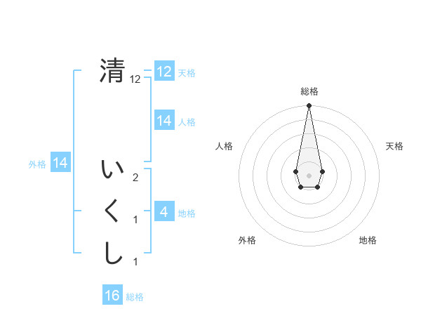 清 いくしさんの総格は16画の5点!