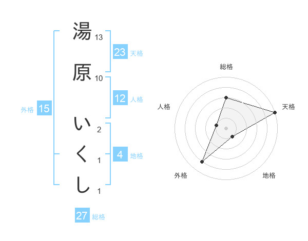 湯原 いくしさんの総格は27画の3点!