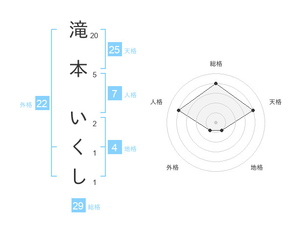 滝本 いくしさんの総格は29画の4点!