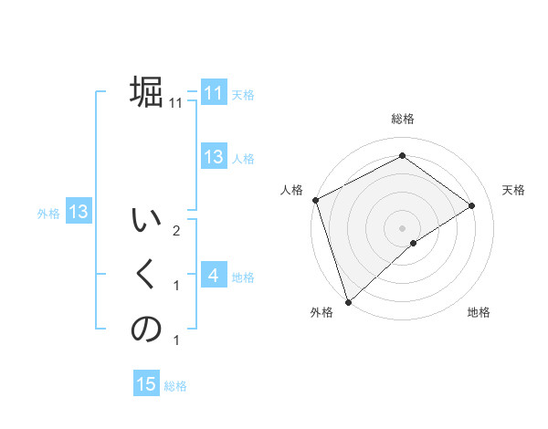 堀 いくのさんの総格は15画の4点!