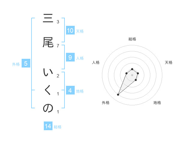 三尾 いくのさんの総格は14画の1点!