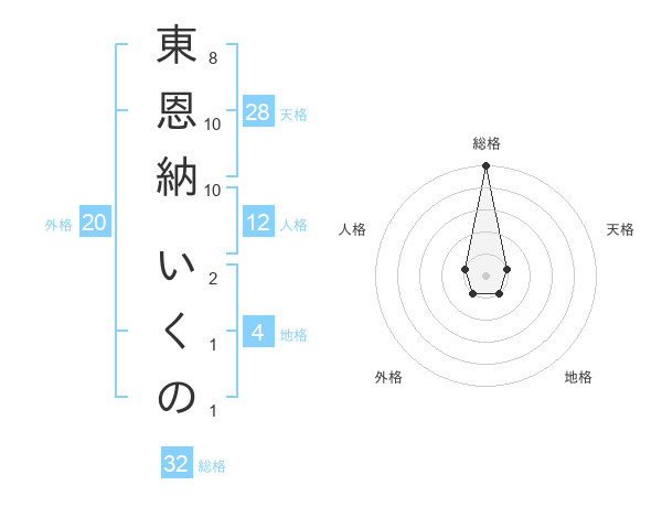 東恩納 いくのさんの総格は32画の5点!