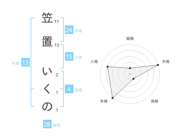 笠置 いくのさんの外格は13画の5点!