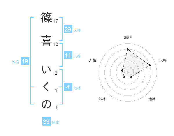 篠喜 いくのさんの天格は29画の4点!