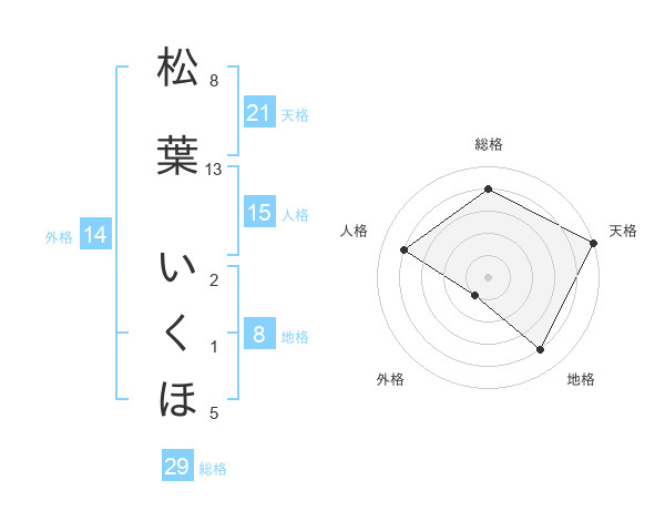 松葉 いくほさんの天格は21画の5点!